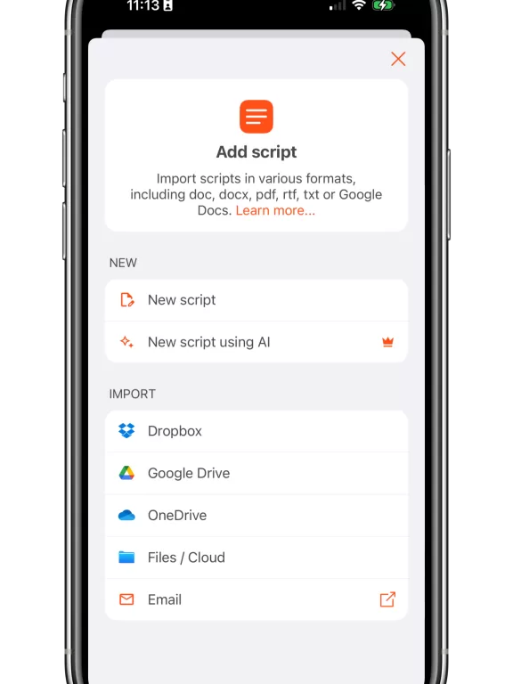 To import from iCloud, please follow the instructions for importing scripts from the Files app.